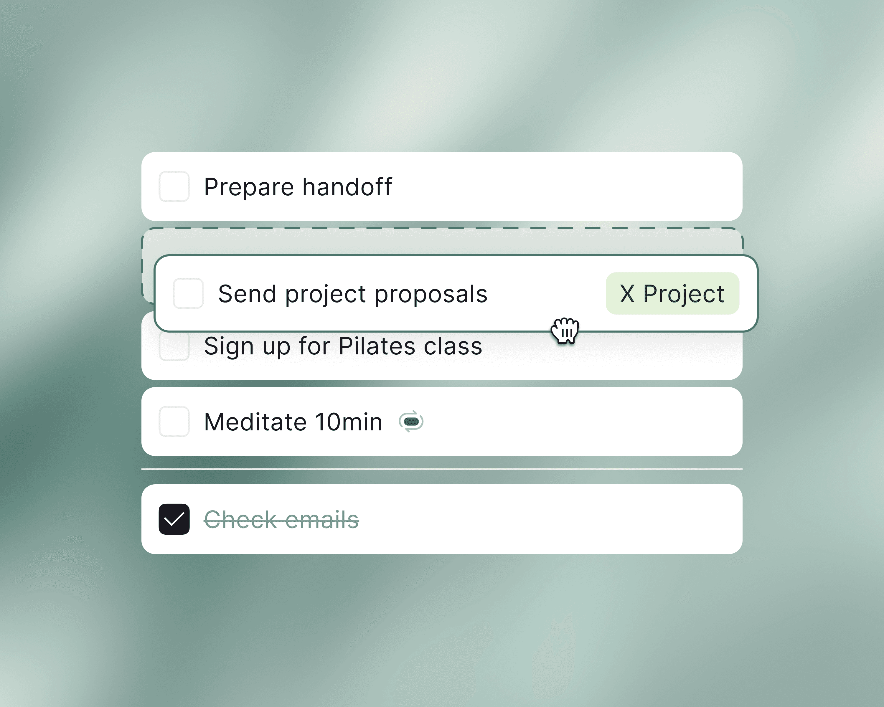 A minimal task list for what matters right now — no priorities, no deadlines, no overload.